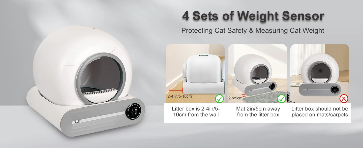 Equipped with multiple safety sensors that stop operation when your cat enters the litter box.